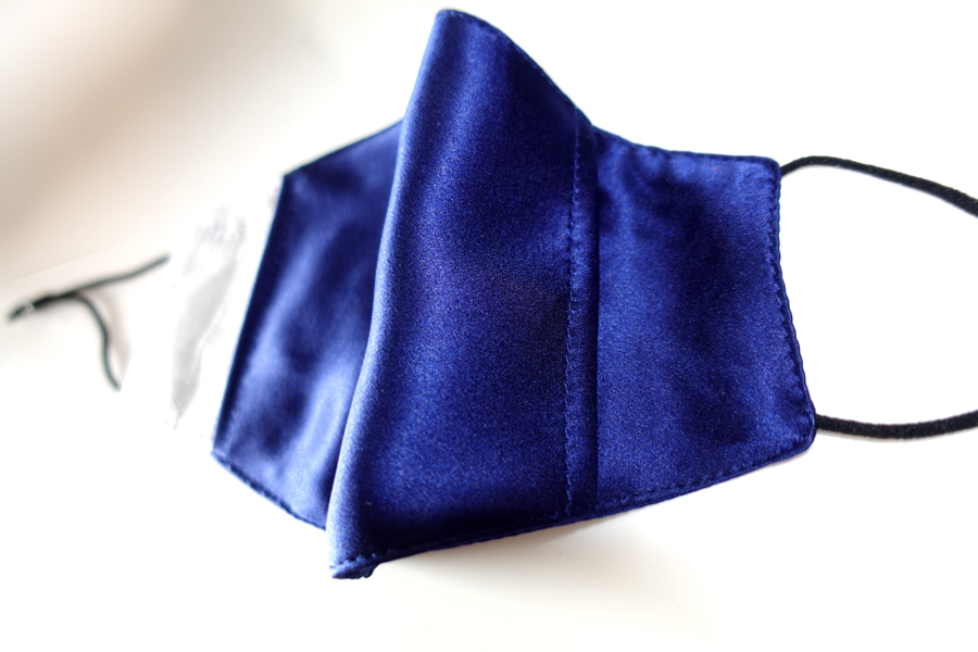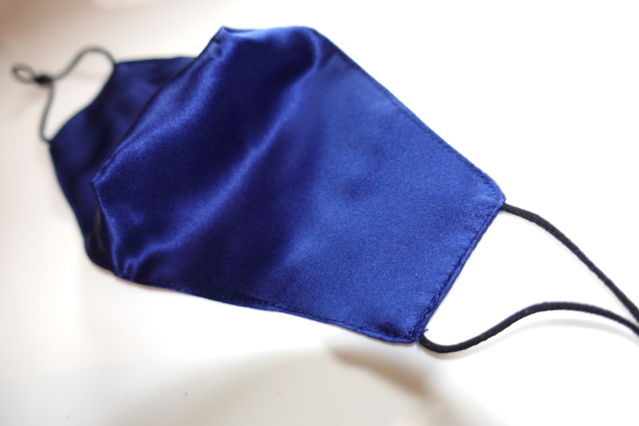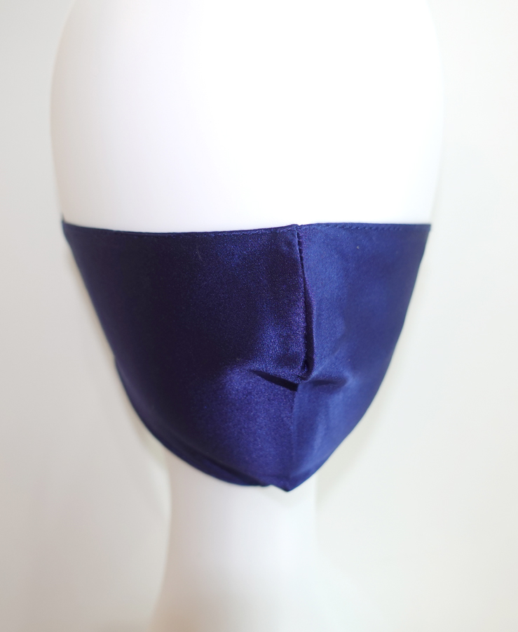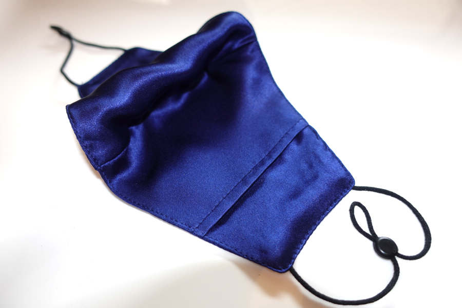 These triple layer face masks have a third layer which acts as a pocket for a pm2.5 replaceable filter and are made of 19mm 100% Silk Charmeuse a sublime fabric luxurious fabric with a firm, soft, supple feel and a stunning sheen. It is the spectacular draping ability however, which makes these masks unique. Once secured in place they conform to the lines of your face. Being silk, these masks are much less bulky and easy to breathe through and I must say they are incredibly stylish. The elastic is soft and has a small toggle that allows you to adjust the fit to your features.